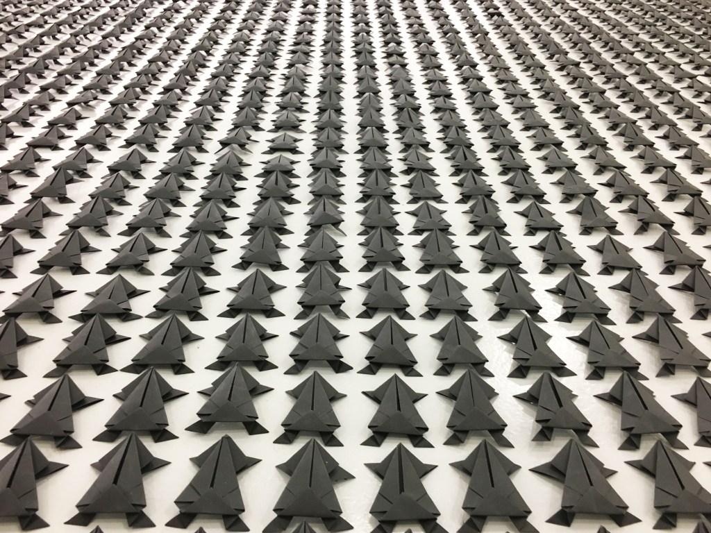 1221 Black papier noir, 2018Le trouble obsessionnel compulsif (TOC) est un trouble anxieux caractérisé par l'apparition de pensées intrusives (inquiétudes, appréhensions ou peurs). Ces pensées dites obsessions sont associées à des compulsions pour diminuer cette anxiété. Ces compulsions sont des séries de gestes reconnus comme irrationnels et sont répétés de façon ritualisées jusqu'à l'envahissement. Le TOC comme entité psychopathologique qui remplace la névrose obsessionnelle, aussi caractérisée par les obsessions, notamment de perfectionnisme et de contrôle. Dans certaines régions d'Asie les TOC sont traités par l'origami.