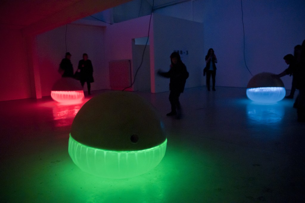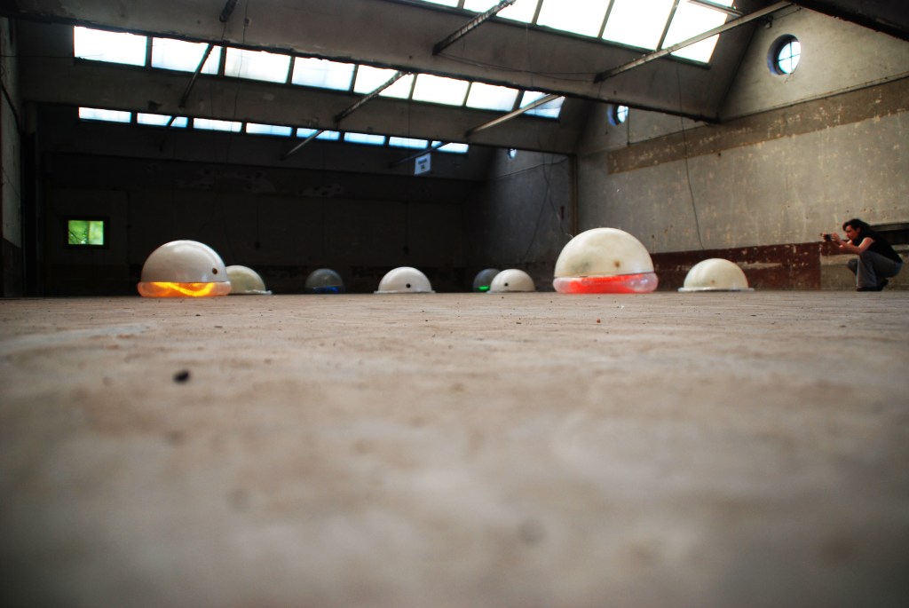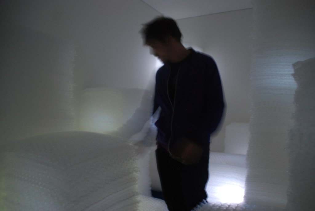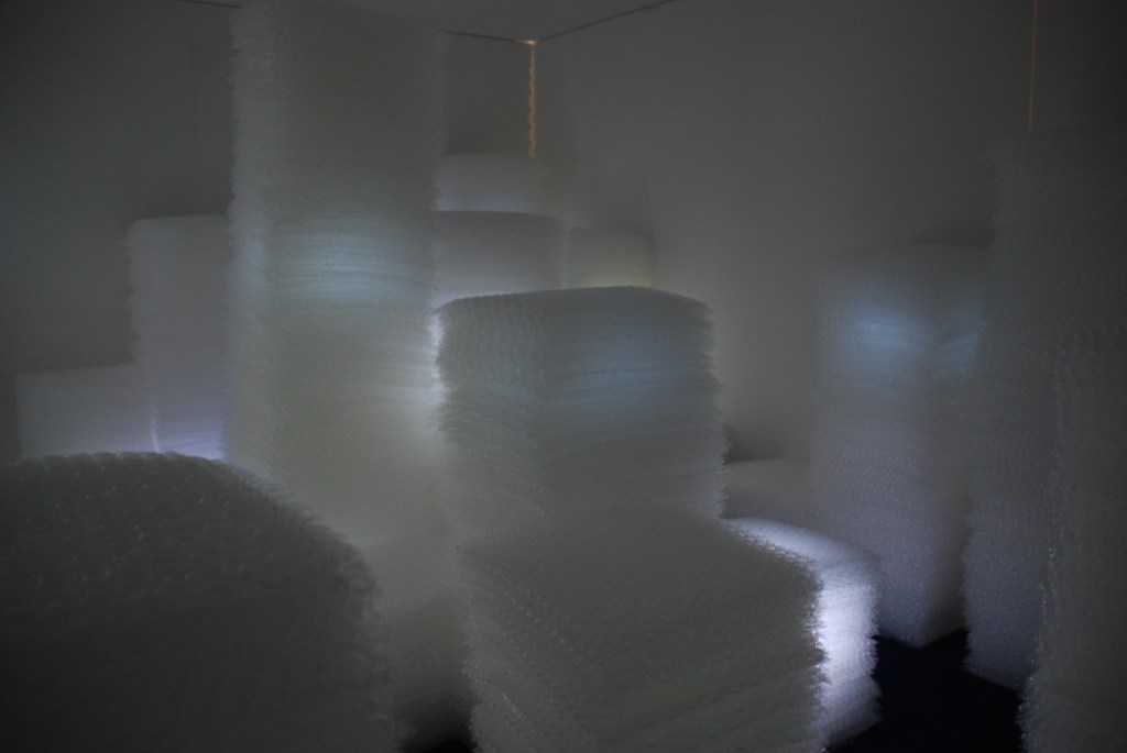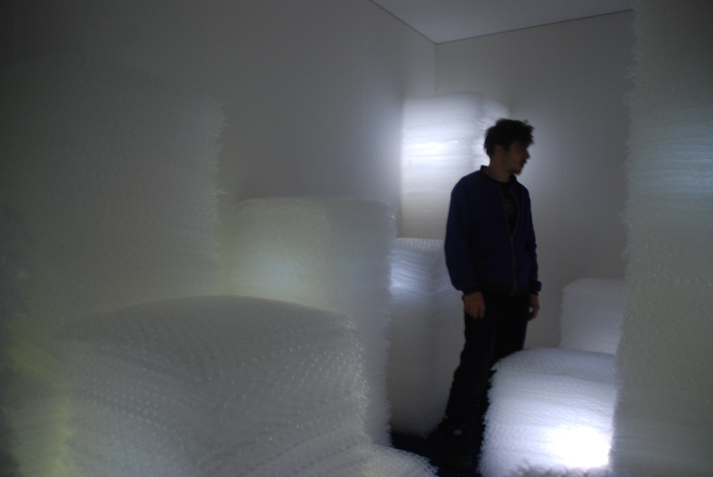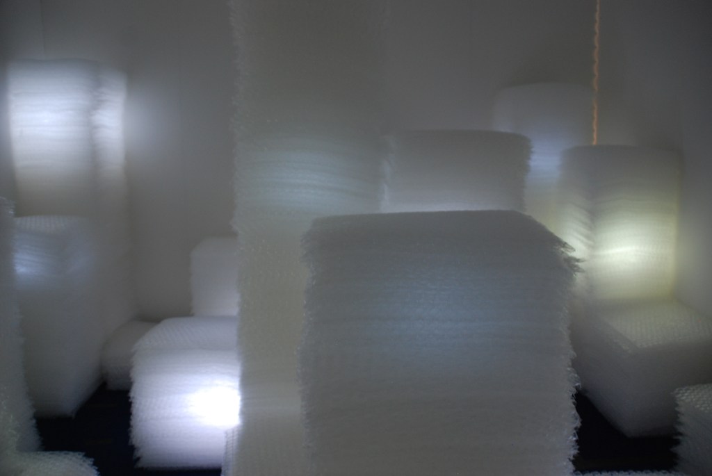 "bubble wrap" " collectif Track now" 1,8 km de papier bulle, Led, espace confiné, 2010.